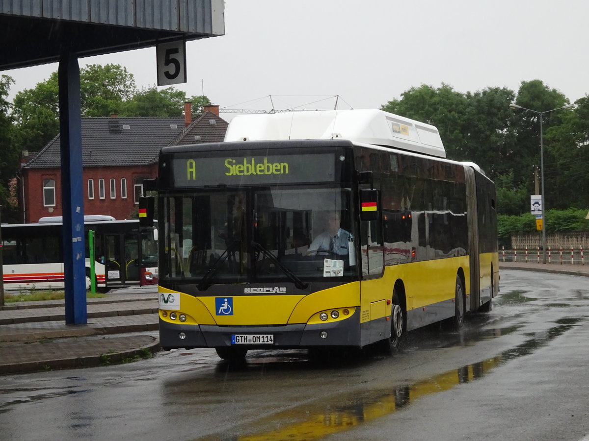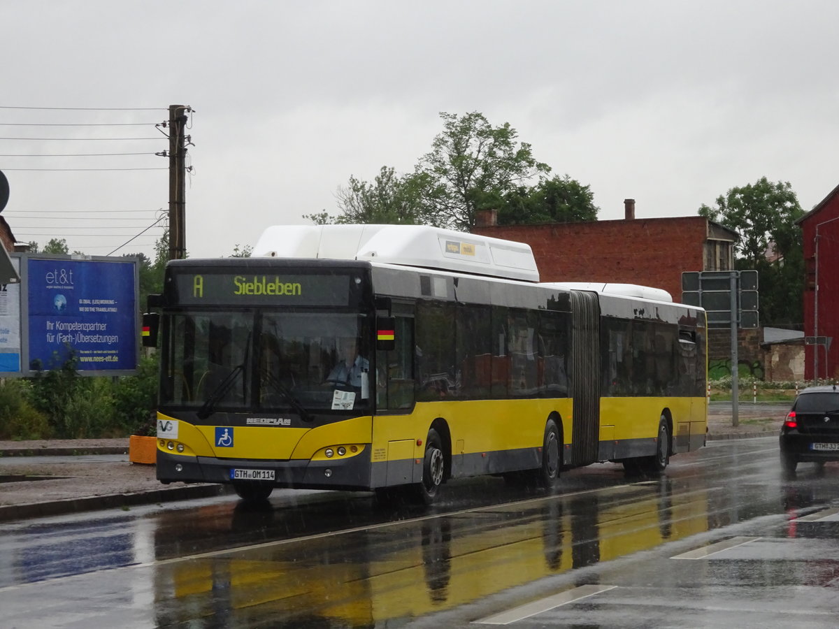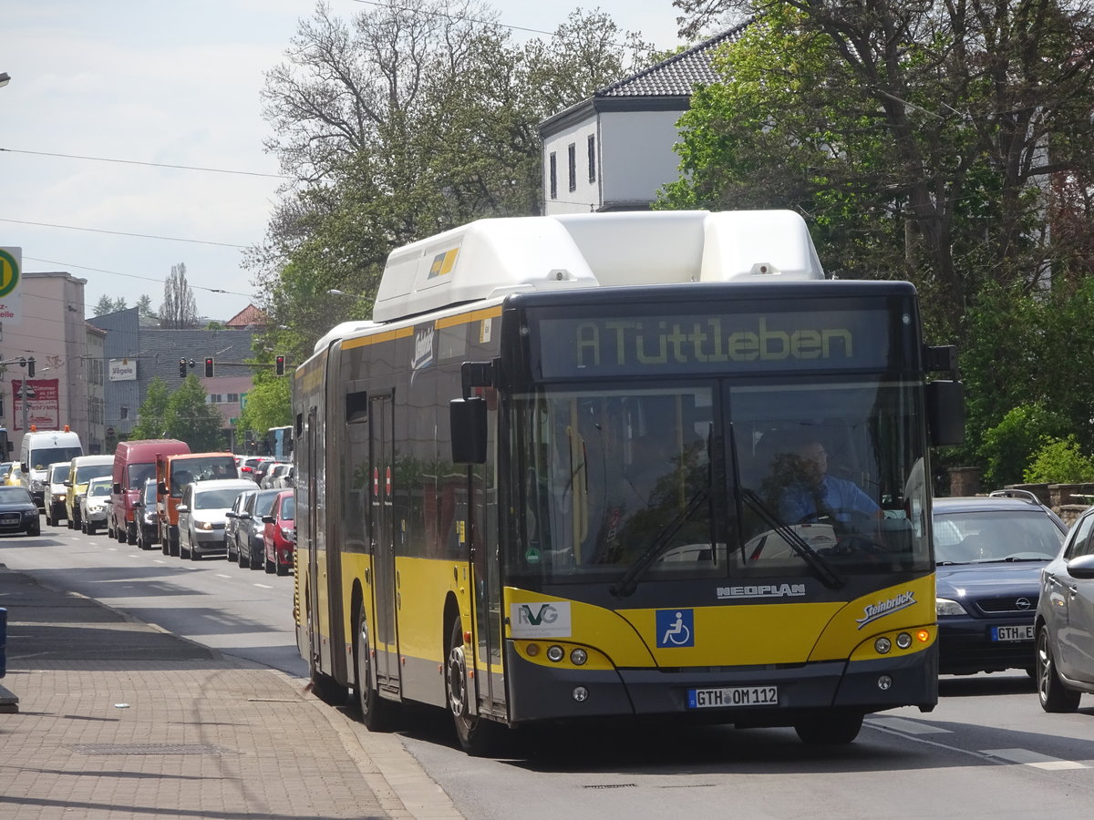 Wagen 115 des Gothaer Busunternehmers Wolfgang Steinbrück, ein Neoplan N4521 CNG, am 27.03.17 auf der Buslinie A am ZOB. Vorher fuhr der Bus beim ehemaligen BVG-Subunternehmer HARU als Wagen 8503.