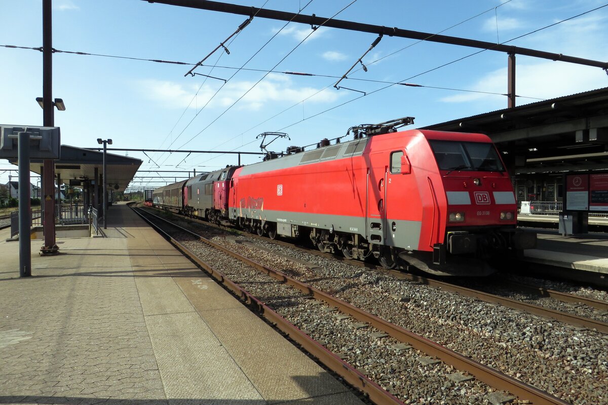 Am 17 September 2020 zieht EG 3108 ein Mischguterzug durch Roskilde.