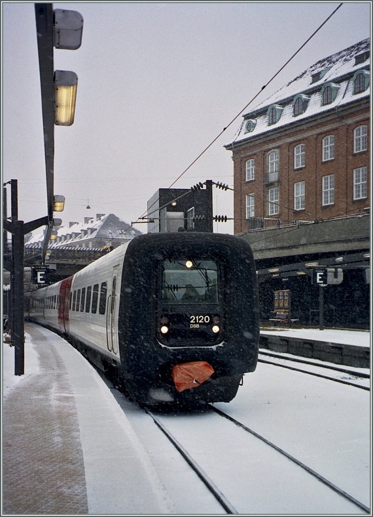 Die DSB Gumminase bzw. DSB IR4 – ER2136, FR 2336, FR 2236 und ER 2036, steht am 20.03.2019 abfahrtbereit im Hauptbahnhof Kopenhagen (Københavns Hovedbanegård).
