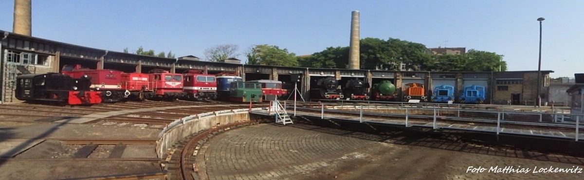 Blick auf die Ausstellungsfahrzeuge im DB Museum Halle (Saale) am 4.7.15