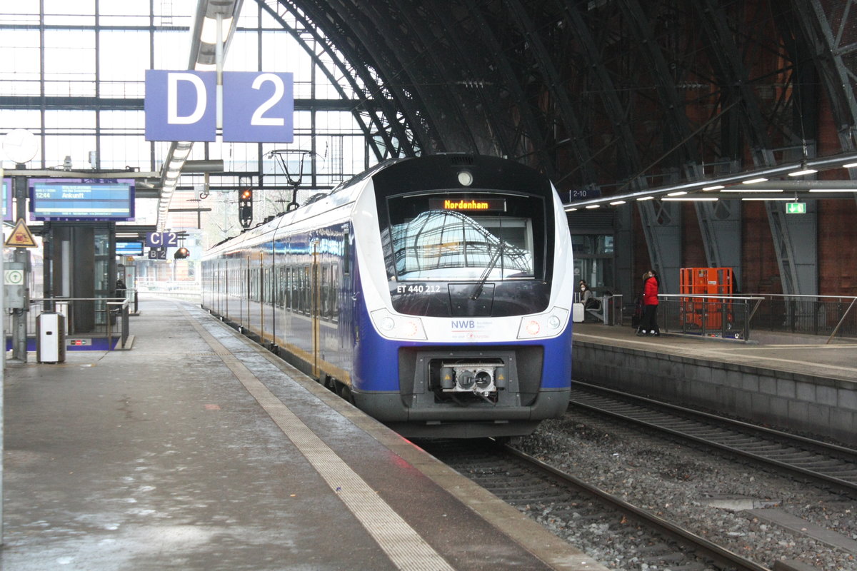 ET 440 212 der NordWestBahn mit Ziel Nordenham im Bahnhof Bremen Hbf am 8.1.21