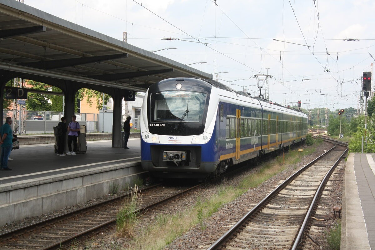 ET 440 220 der NWB bei der Einfahrt in den Endbahnhof Verden (Aller) am 8.6.22