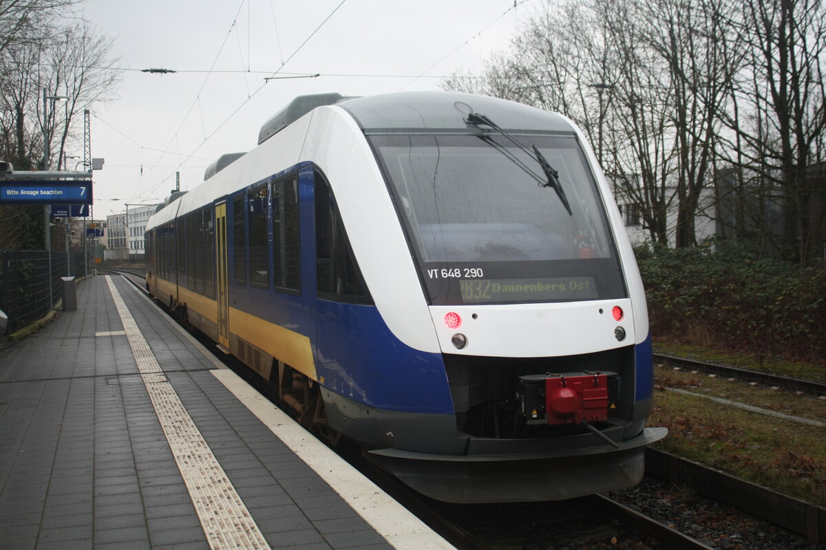 VT 648 290/790 der NWB fährt für Erixx und steht hier als RB32 mit Ziel Dannenberg Ost um Bahnhof Lüneburg am 4.1.22