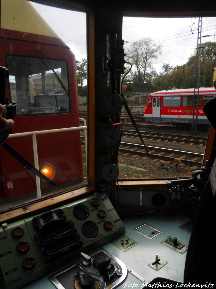 Blick vom führerstand vom SVT 137 234 auf den 772 342 in Falkenberg/Elster am 9.10.16