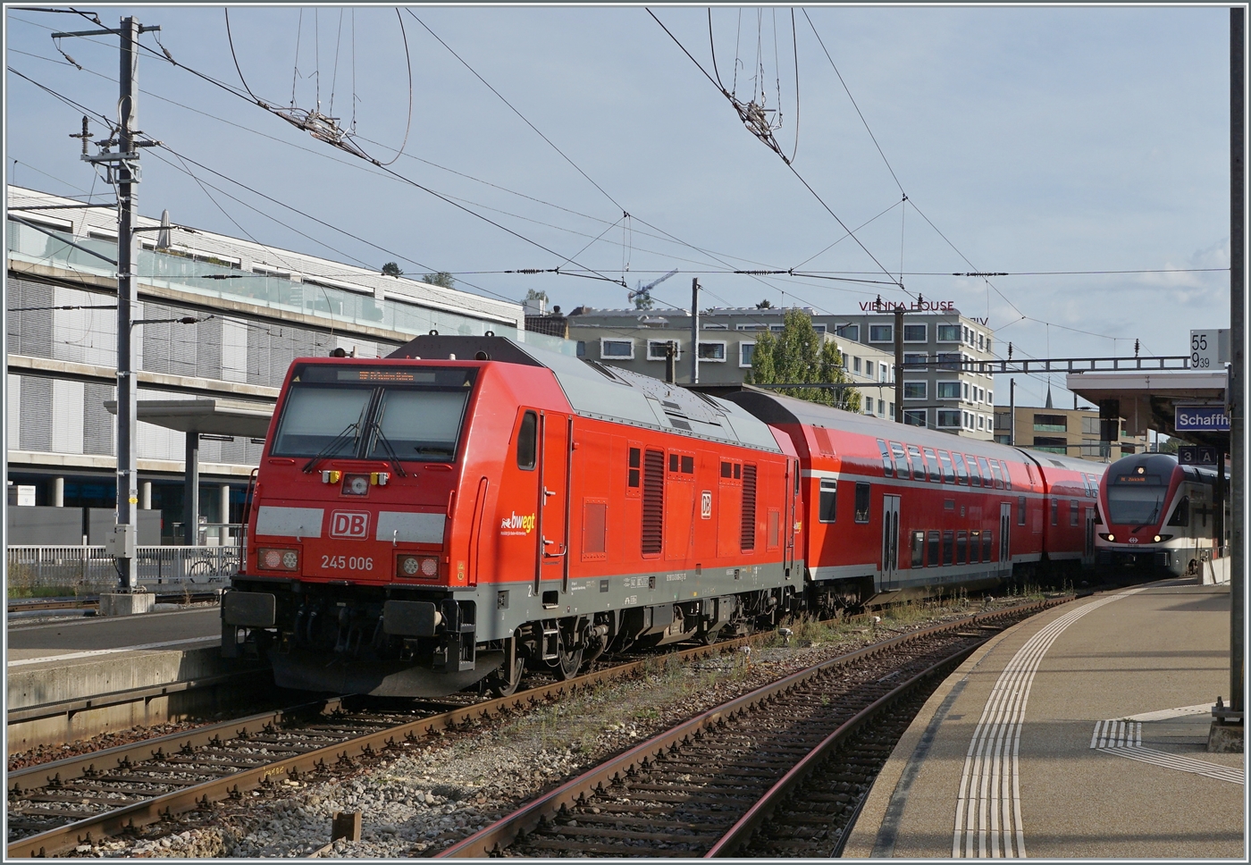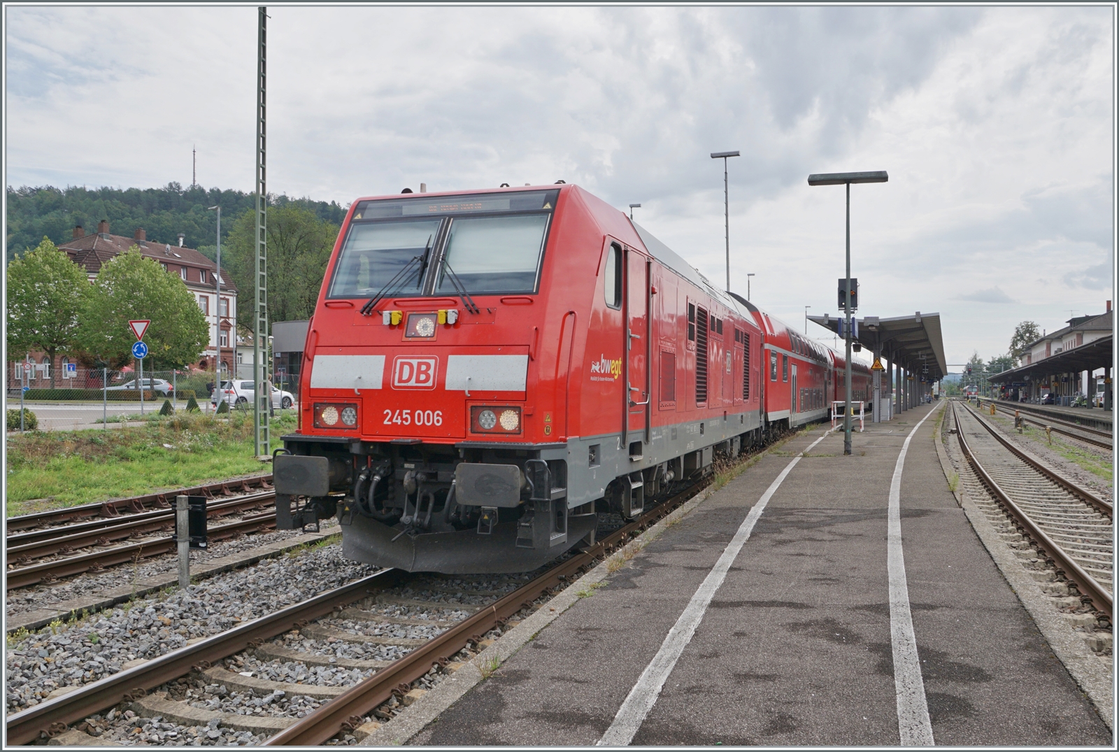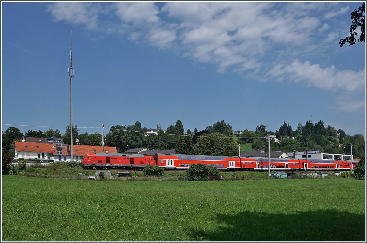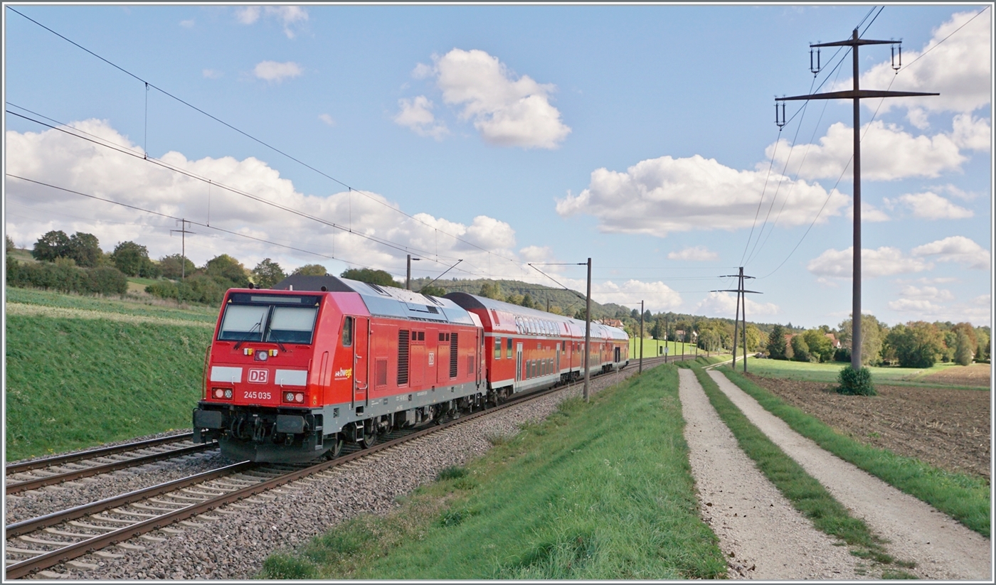 DB 245 027 verlässt Niebüll mit ein Sylt-Shuttle am 20 September 2022.