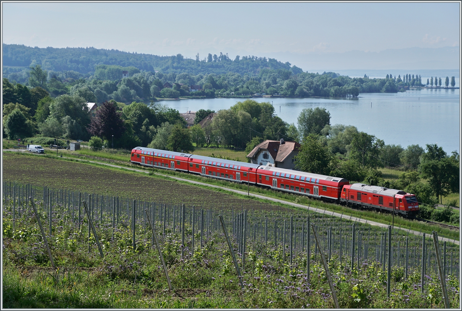 Kurz nach der Grenze bei Bietingen ist die DB 245 035 mit einem IRE in Richtung Singen unterwegs.