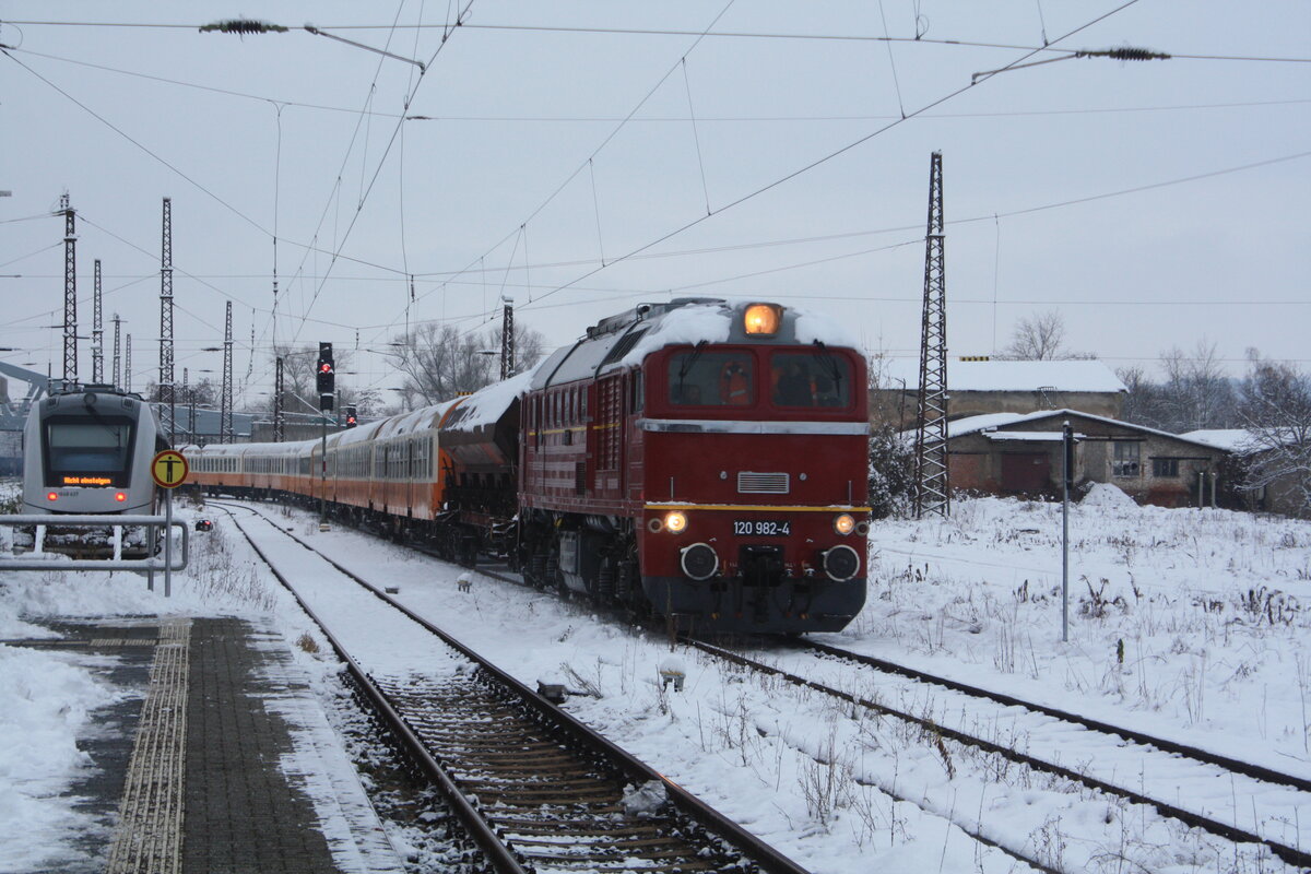 232 690 mit 243 822 der EBS verlassen mit dem Städteexpress mit ziel Weimar den Bahnhof Naumburg(Saale) Hbf am 1.12.23