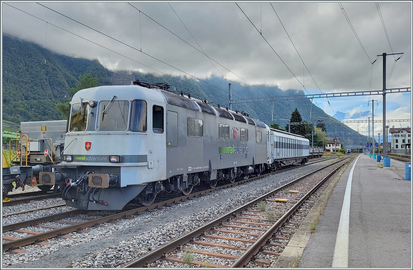 Die railadventure Re 6/6 91 85 4620 003-4 CH-RADVE brachte die beiden Stuttgarter S-Bahn Triebwagen nach Villeneuve und wartet und auf die Rückfahrt.