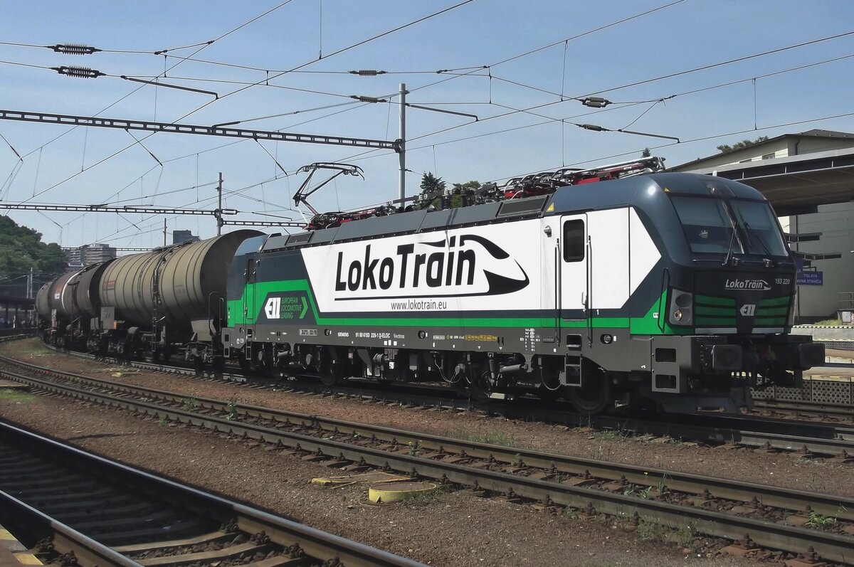 ELL-Söldner 193 220 in Dienst von LokoTrain zieht ein Kesselwagenzug durch Bratislava hl.s.t am 31 Mai 2015.