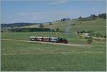 30 ANS CONI'FER /30 Jahre Coni'Fer - Mitten im Jura, auf gut 1000 müM, 467 km von Paris (und ca 400 von Milano) entfernt kreuzen sich in der kleinen Landstation Le Touillon zwei Züge. Die Höhenlage mit strengen Wintern und eine durchs Gelände ungünstige Kurven- und steigungsreiche Trassierung waren schlechte Voraussetzungen für einen effizienten Betrieb der Strecke Vallorbe - Pontarlier, weshalb man sich zum Bau des Mont-d'or Tunnels entschloss, der 1915 eröffnet wurde und der die Strecke Vallorbe - Pontarlier zur Nebenbahn degradierte. Wie gut, dass die Coni'Fer 1992 die Initiative ergriff, hier wieder Züge verkehren zu lassen, was seit 1993 auch wieder möglich ist. Das Bild zeigt die 52 8163-9 mit vier vierachsigen Plattform Wagen Bi 4 (ex Seetal/EBT?) auf der Fahrt nach Fontaine Ronde und den Gegenzug mit der E 3/3 N° 5 "Rhone" (SLM 1915/ Fabriknummer 2538) in Le Touillon.
