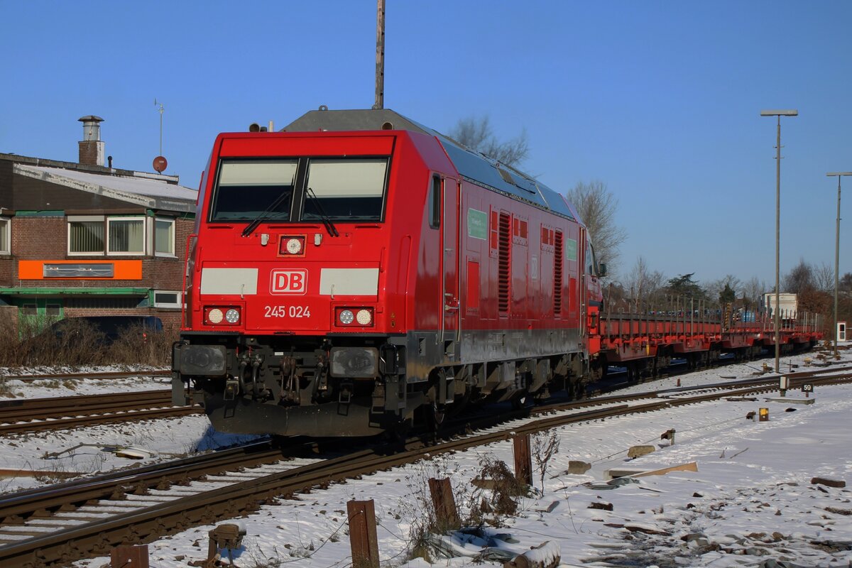 DB 245 024 treft am 15 Februar 2026 mit ein Sylt-Shuttle aus Westerland (Sylt) in Niebüll ein.
