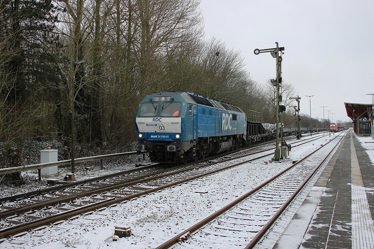 RDC 2700-03 zieht am 16 Februar 2026  ein Sylt-Shuttle aus Niebüll und passiert dabei noch die Formsignale.
