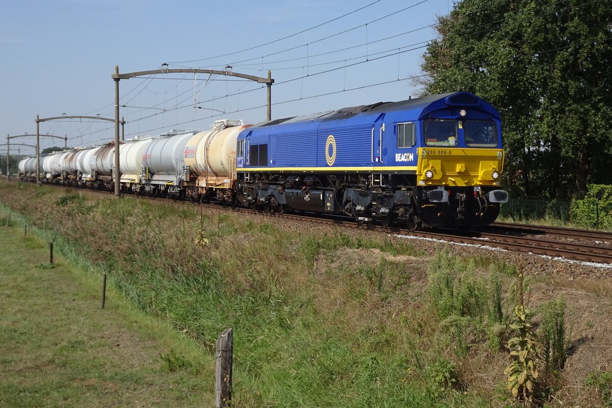 RailTraxx 266 009 zieht der Millinger Kesselwagenzug durch Hulten am 2 September 2022.