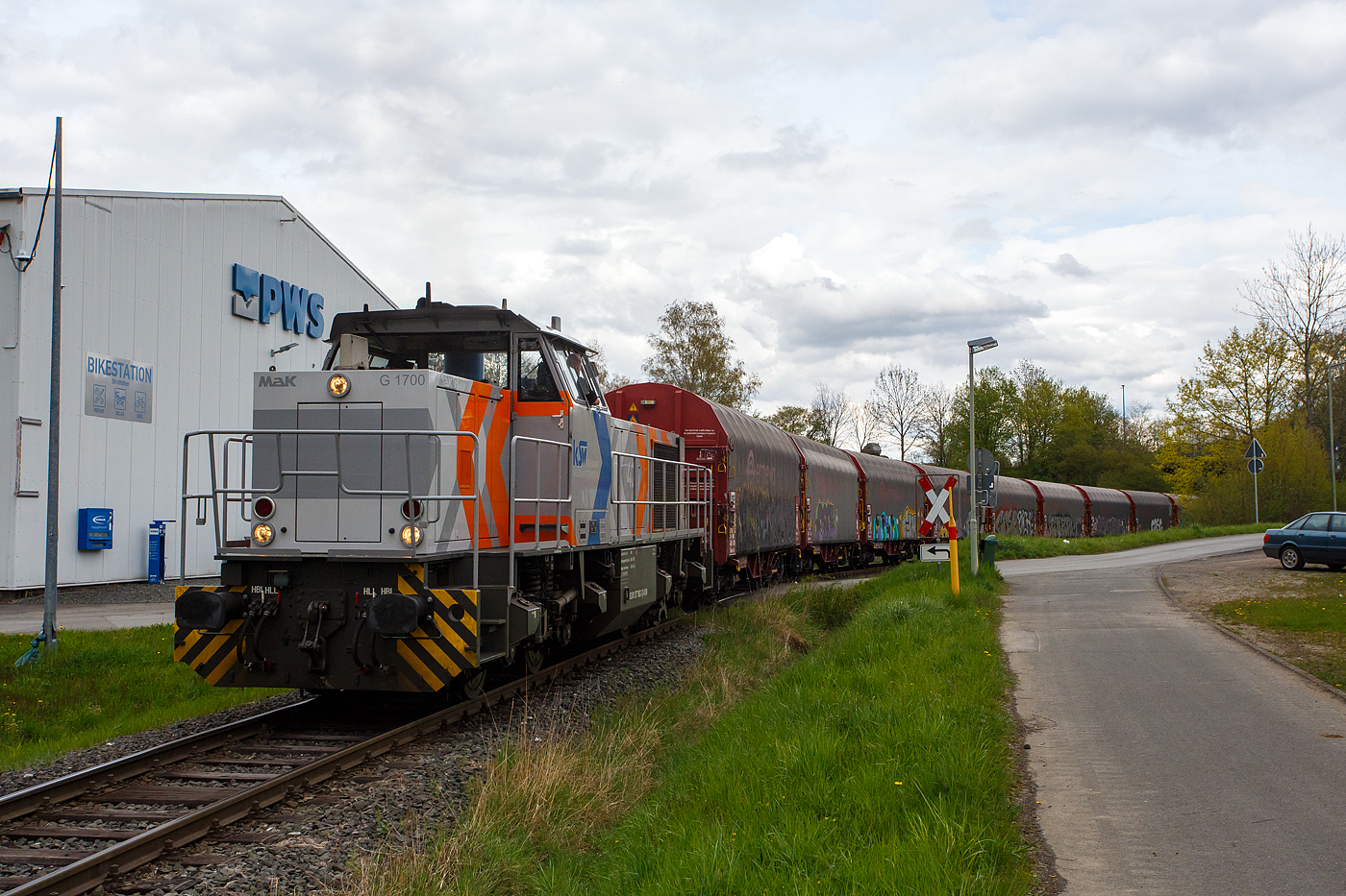 Baustelle Bahnhof Herdorf am 12 Oktober 2025, nun werden die Weichen 25 und 26 eingeschottert. Dafür zieht oder drückt die 277 809-0 "Elmi“ (92 80 1277 809-0 D-KAF) der KAF - Falkenhahn Bau AG (Kreuztal) den Schotterzug langsam hin und her.
