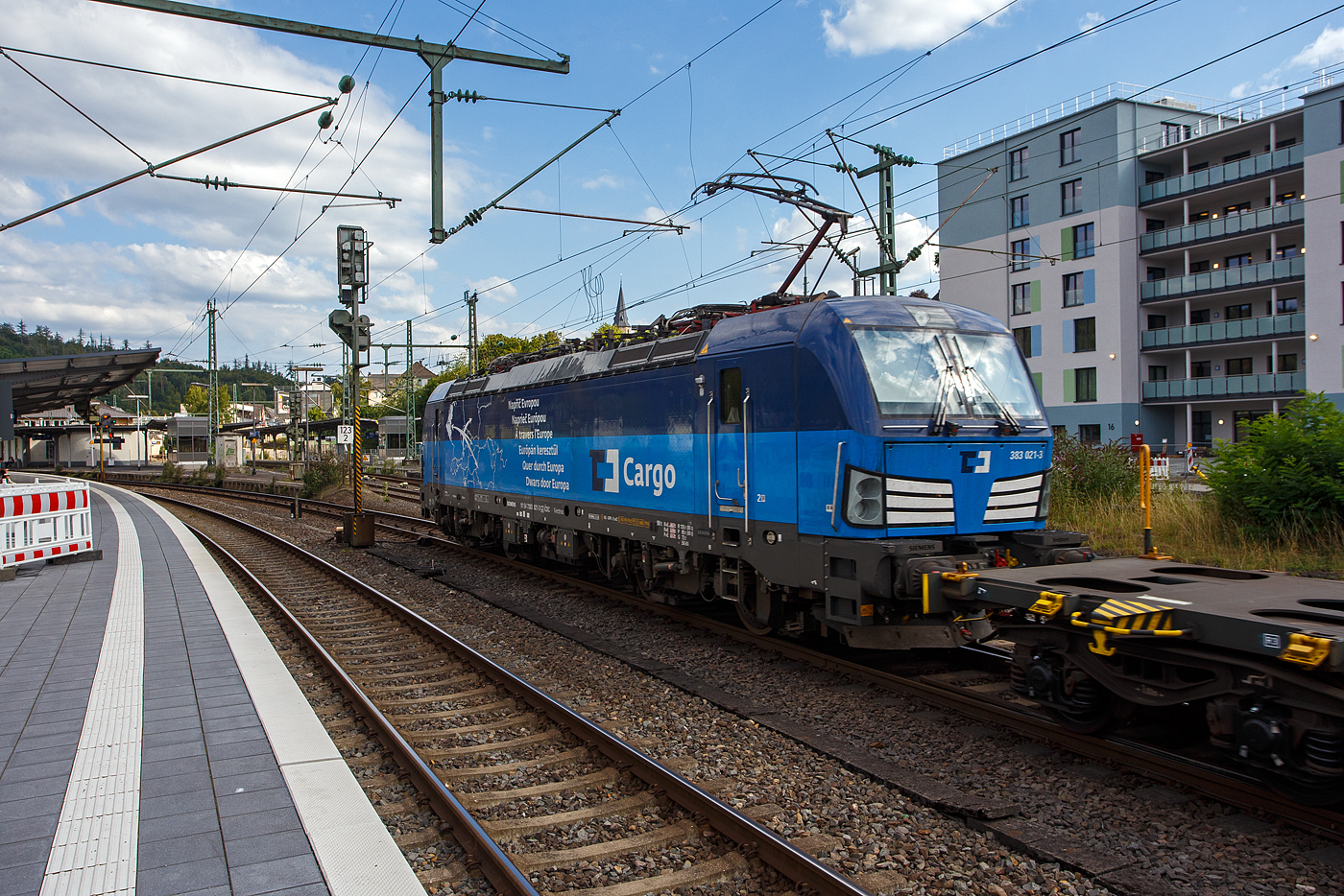 Die Re 482 036-1 (91 85 4482 036-1 CH-SBBC) der SBB Cargo fährt am 14.04.2018 mit einem Containerzug durch Friedberg (Hessen) in Richtung Norden.