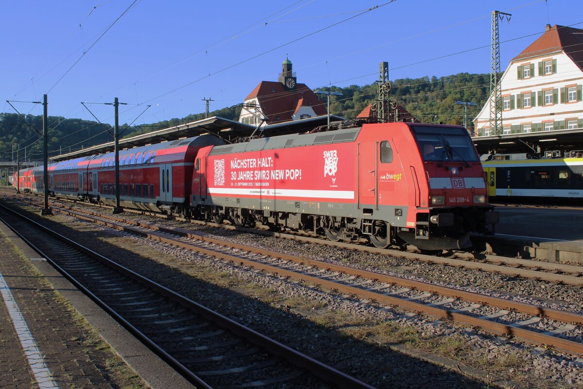 Langsam verschwindet das klassike Metropnom Farbenschema. Am 2 Mai 2024 tragt ME 146-17 noch diese Farben beim ausfahren aus Celle mit ein RE nach Hamburg Hbf. Bis 2027 fahren die Metronomzüge noch.