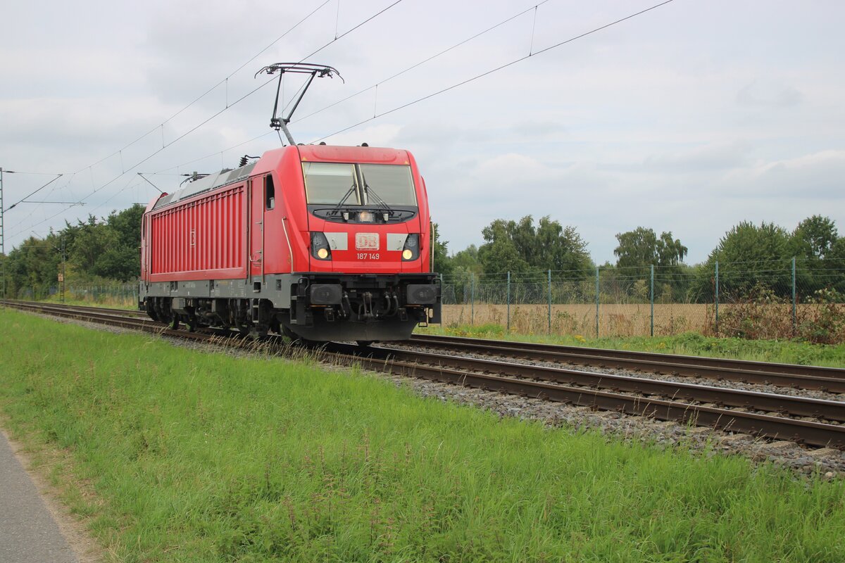 Solofahrt bei Kaarst Broicherseite (zwischen Neuss Hbf und Meerbusch-Osterath) für DBC 187 149 am 8.Augustus 2025.