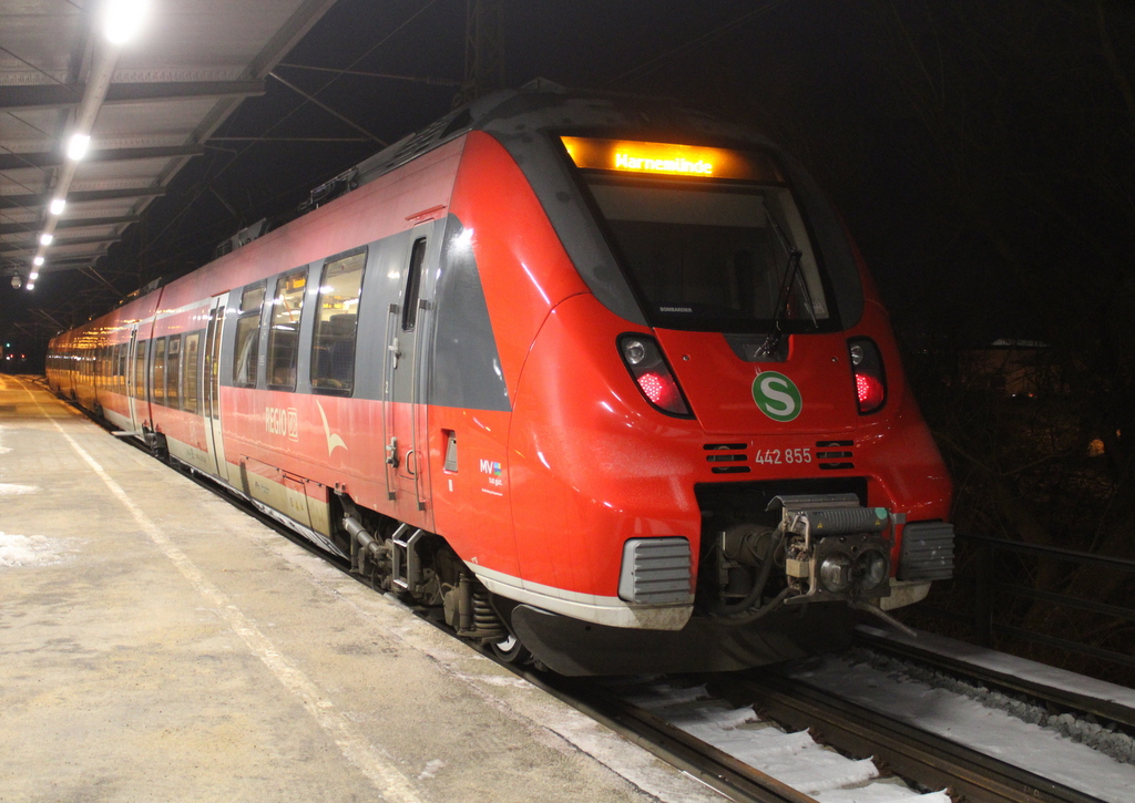 442 342 als S3 von Warnemünde Werft nach Güstrow via Laage bei der Ausfahrt im Rostocker Hbf.29.12.2015