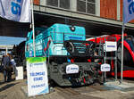 Frontdetail der von Stadler auf der InnoTrans 2018 (hier 19.09.2018) in Berlin präsentierten sechsachsige Eurodual 159 003-3 (90 80 2159 003-3 D-HVLE) für die Havelländische Eisenbahn AG (hvle).