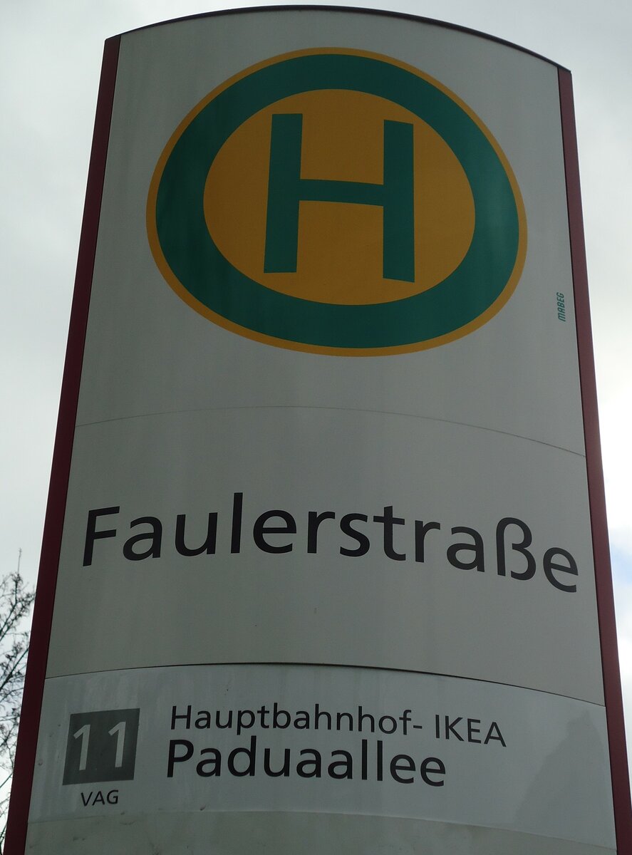 (131'574) - VAG-Haltestellenschild - Freiburg, Faulerstrasse - am 11. Dezember 2010