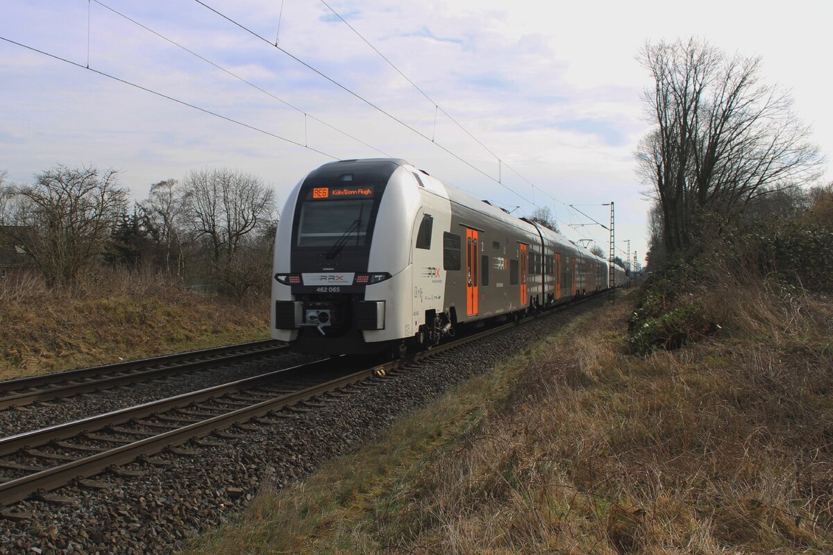 Zwei gekuppelte vierteilige Siemens Desiro HC (462 016 und 462 021) des RRX Rhein-Ruhr-Express (betrieben vom der National Express) fahren am 01.06.2019, als RE 5 „Rhein-Express“ nach Wesel, in den Bahnhof Bonn UN Campus (in Bonn-Gronau) ein. Der Rhein-Express ist noch im RRX-Vorlaufbetrieb, National Express betreibt z.Z. einem Umlauf im Auftrag der DB Regio.