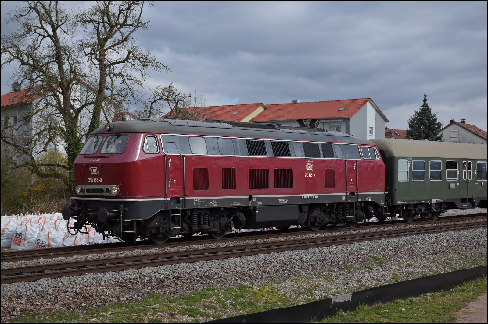 612 128 fährt durch Warmbach. Diese Züge schwächelten im ersten Jahr um dann ab 2019 weitgehend störungsfrei ganz entgegen dem sonstigen Trend für einen Lichtblick sorgten. Das Kurzpendel Basel-Singen dürfte derzeit der zuverlässigste Zug in Baden-Württemberg sein. Und das, obwohl diese Baureihe alle Nase lang den überforderten Dieselloks der Baureihe 245 aushelfen muss. Es wird nicht nur elektrifiziert an der Strecke. Auch 3 neue Haltepunkte werden eingerichtet. Die Baustelle für den künftigen Haltepunkt Warmbach ist bereits eingerichtet, wie hier erkennen kann. März 2026.
