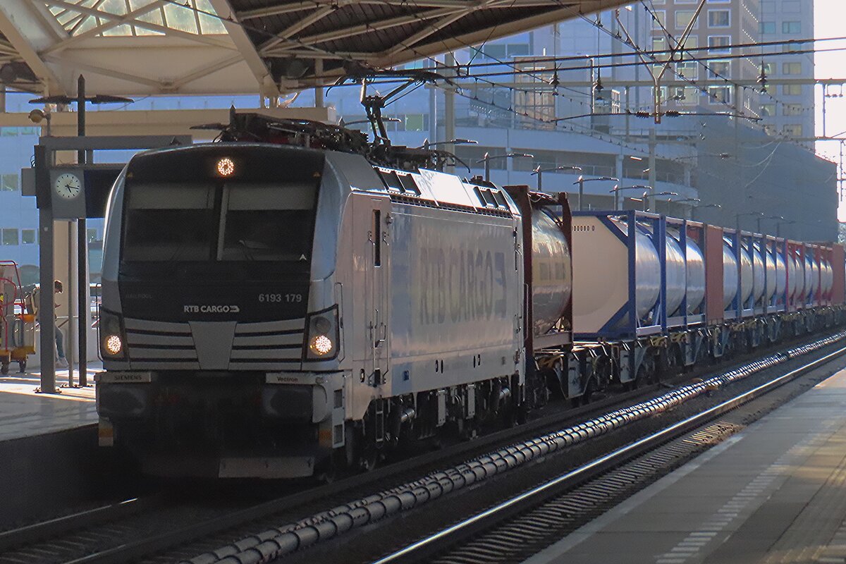 Die an die TX Logistik AG vermietete Siemens Vectron MS 193 961 (91 80 6193 961-0 D-ELOC), der ELL - European Locomotive Leasing (Wien), fährt am 02 November 2024 mit einem KLV-Zug durch Kirchen(Sieg.