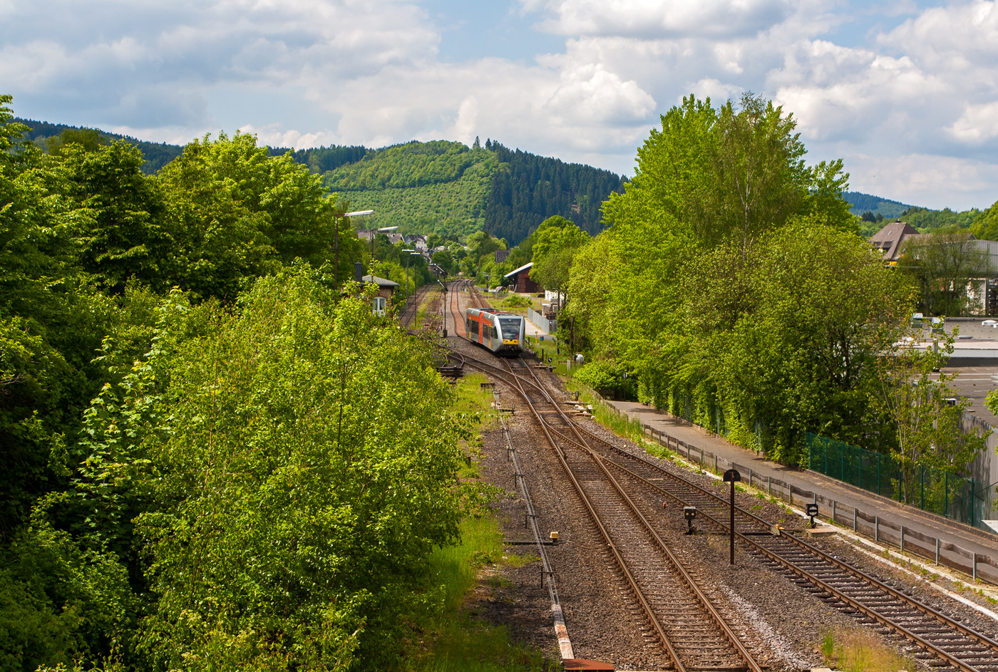 Nachschuß: Dieseltriebwagen 648 202 / 702 (Alstom Coradia LINT 41) der DreiLänderBahn als RB 95 (Dillenburg-Siegen-Au/Sieg), hat am 04.02.2012 den Bahnhof Haiger verlassen und fährt weiter auf der Dillstrecke (KBS 445) in Richtung Siegen.