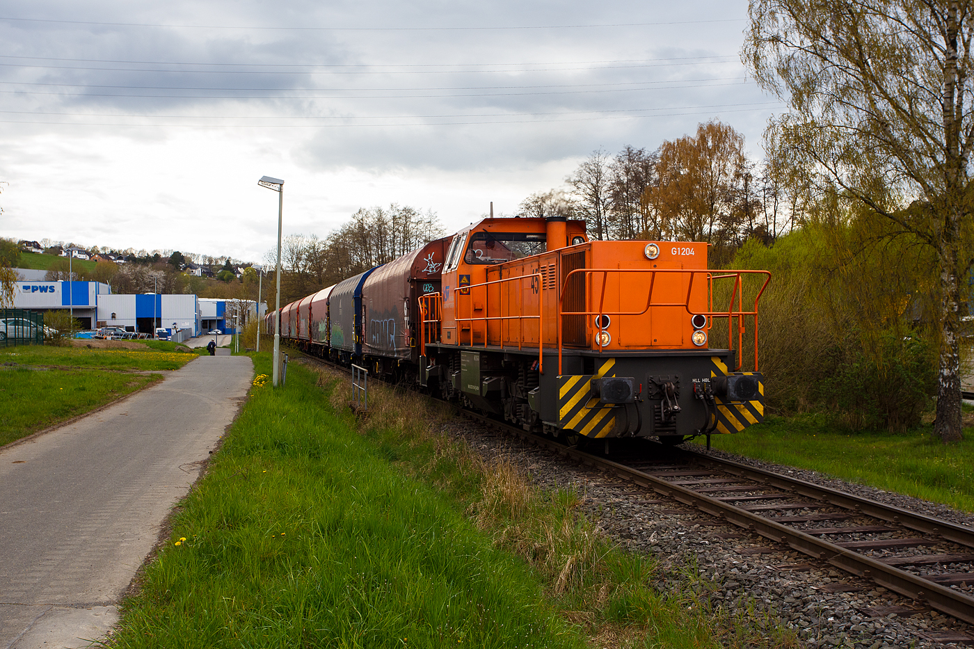 Es war ein beträchtlich langer Zug, aber trotzdem reicht alleine die Zugkraft der MaK G 1204 BB mit einer Leistung von 1.120 kW (1.522 PS), da die Wagen alle leer sind. Die KSW bringt solche Wagenzüge (Übergabezüge) an Werktagen täglich (meist nachmittags) über Betzdorf (Sieg) zum DB Rbf Kreuztal. Dort werden dann wieder von der DB Cargo Züge für die einzelnen Bestimmungsorte zusammengestellt und abgefahren.
