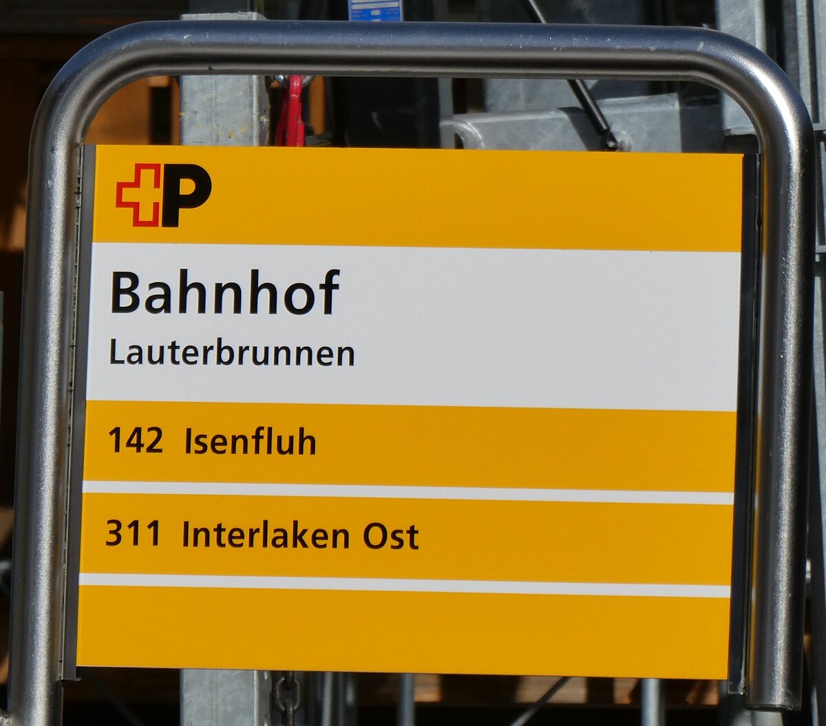 (268'398) - +P-Haltestellenschild - La Chaux-du-Milieu, village - am 24. Oktober 2024