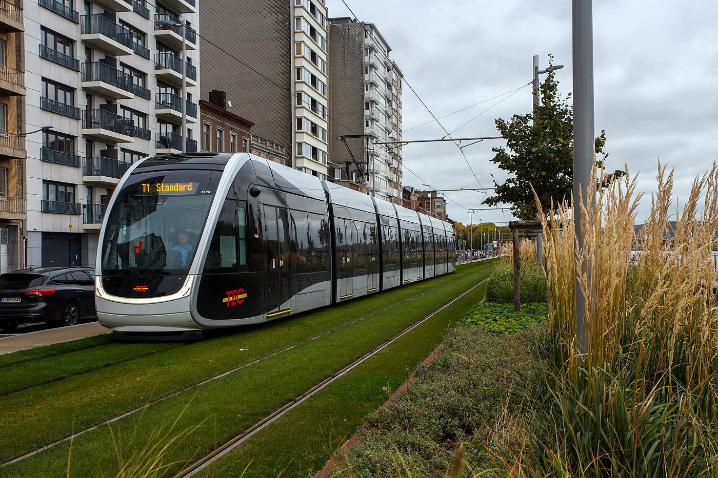 Zwei gekuppelte CAF Urbos 100, vorne der fünfteilige 6020 gekuppelt mit einem siebenteiligen 60xx, der Stadtbahn Utrecht (Utrechtse sneltram), Betreiber U-OV, erreichen am 29 April 2025, als Linie 22 zum Science Park P&R, die Station Utrecht Centraal Centrumzijde (Utrecht Hbf). Hier an dem Gleis B3 (wie auch Gleis B4) muss der Triebwagenzug Kopf machen (Fahrtrichtungswechsel).