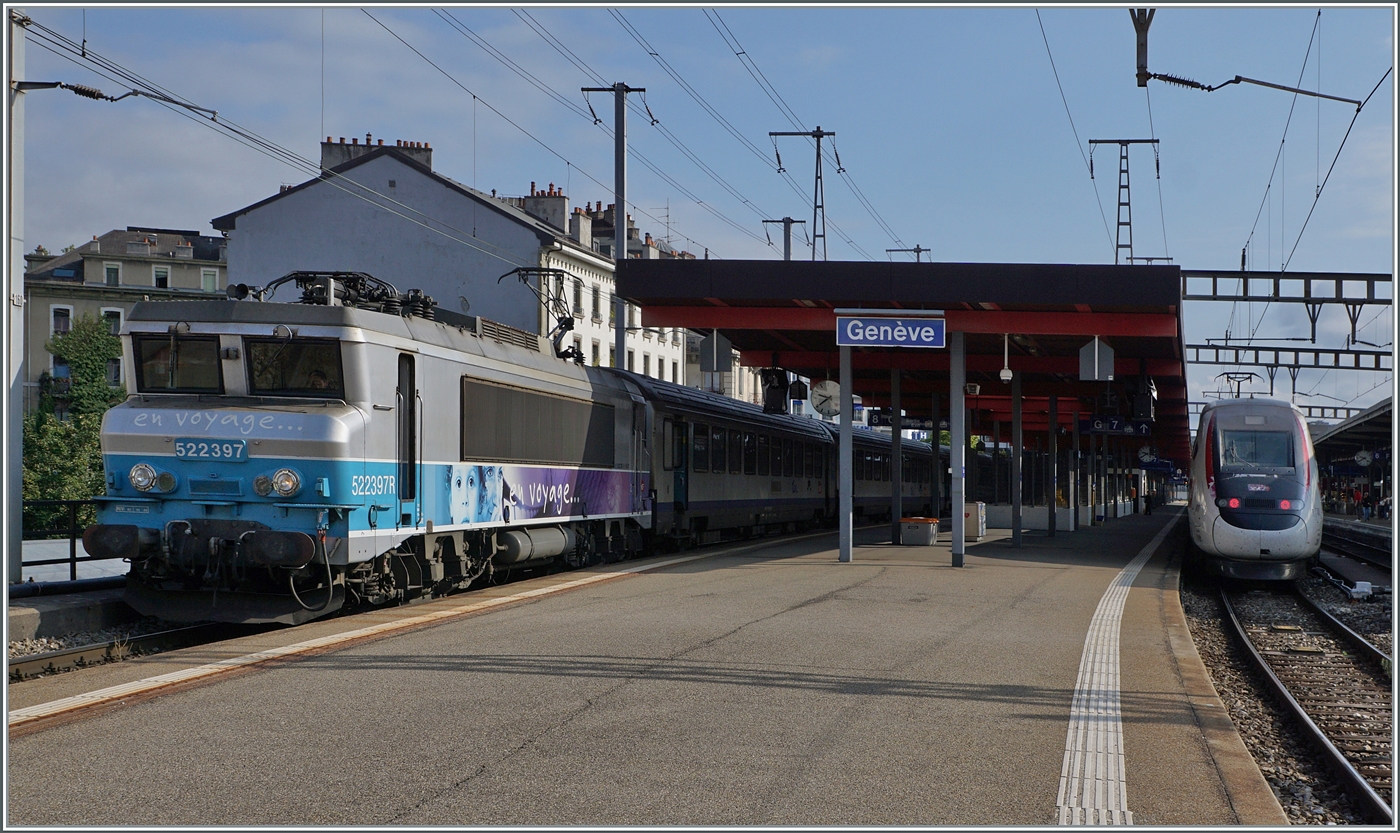 Die SNCF BB 22393 "Nez cassé" schiebt bei Bourdigny kurz vor Satigny ihren TER von Genève nach Lyon.