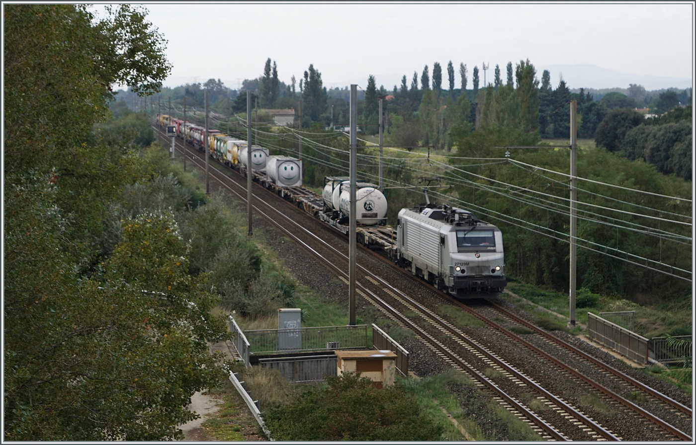 Lineas 186 384 zieht ein Containerzug durch der Quasi-Biotop von Köln West am 19 Mai 2022.