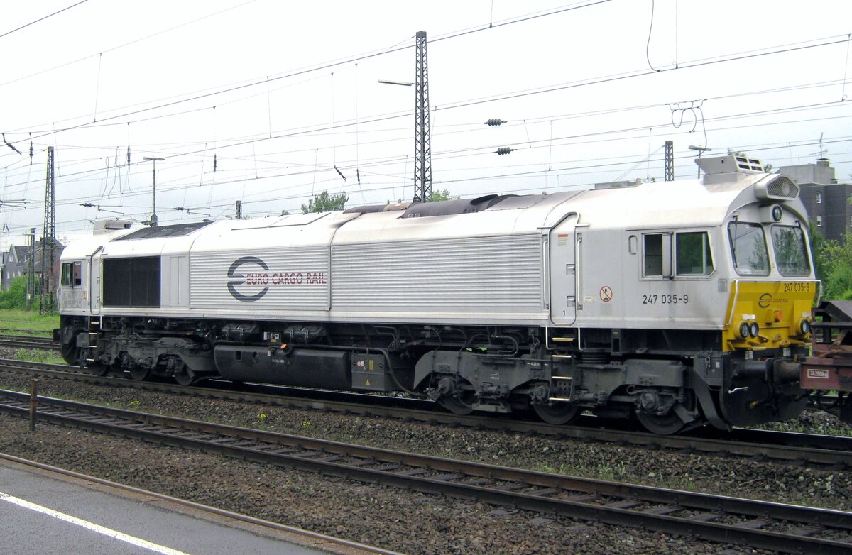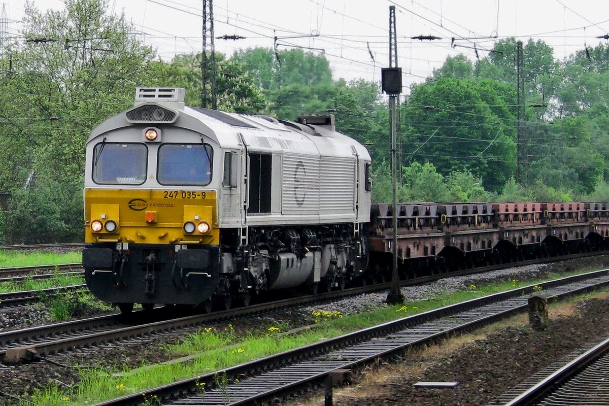 An grauen 12 Mai 2012 schleppt ECR 247 035 ein Leerstahlzug durch Oberhausen Osterfeld Süd.
