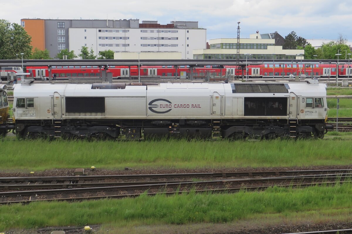 EuroCargorail 077 024 ruht sich am 18 Mai 2023 in Mühldorf.