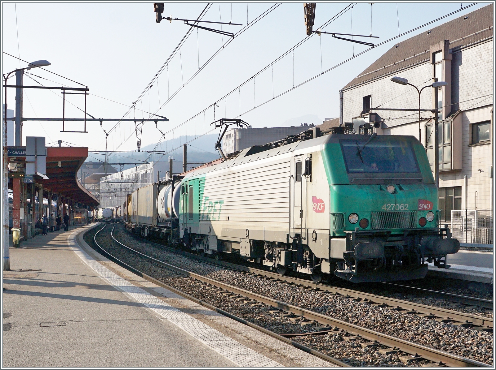 Leider nur bei kräftigem Gegenlicht konnte ich die SNCF BB 27062 in Chambéry fotografieren.