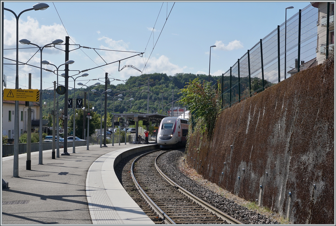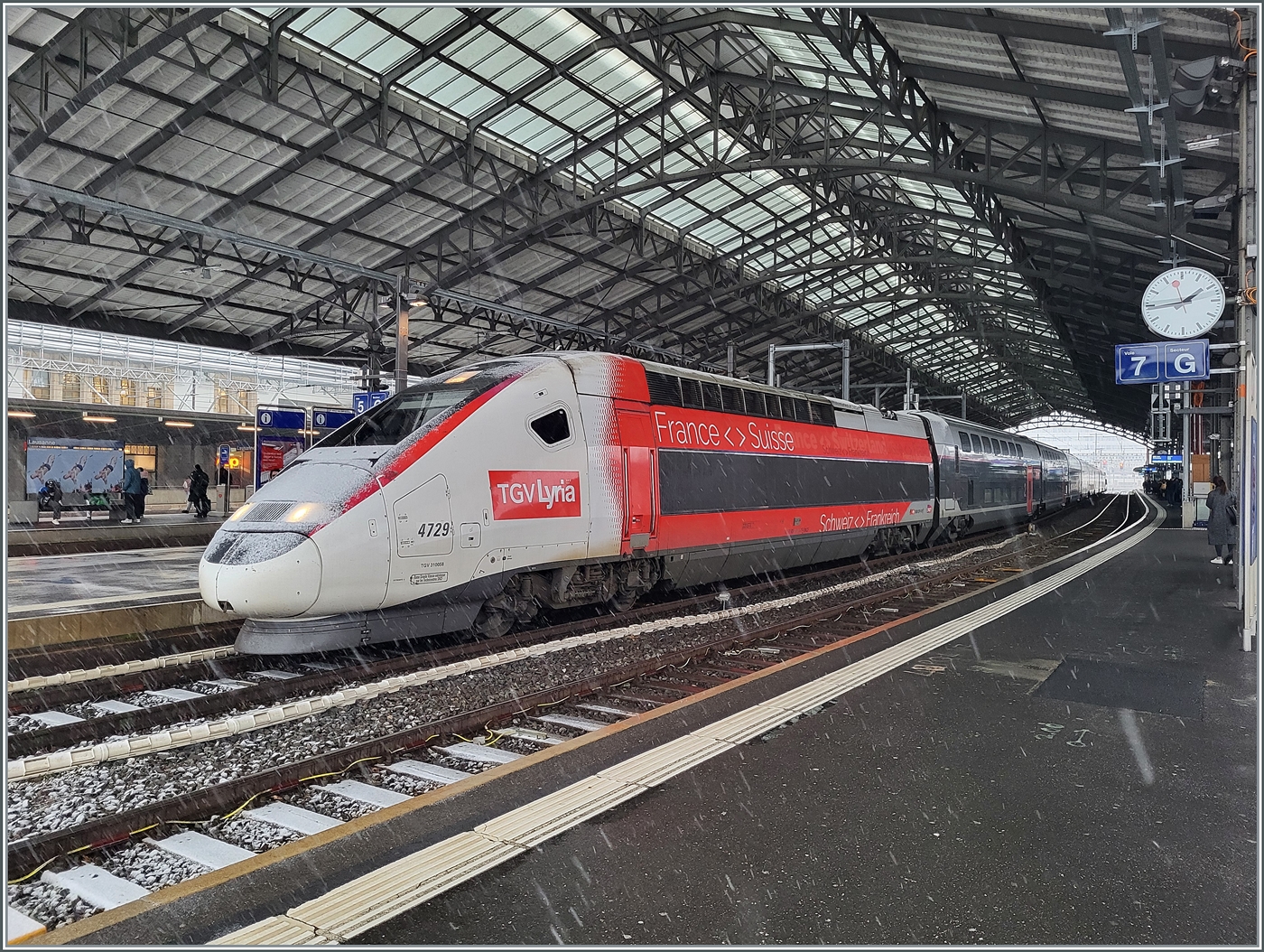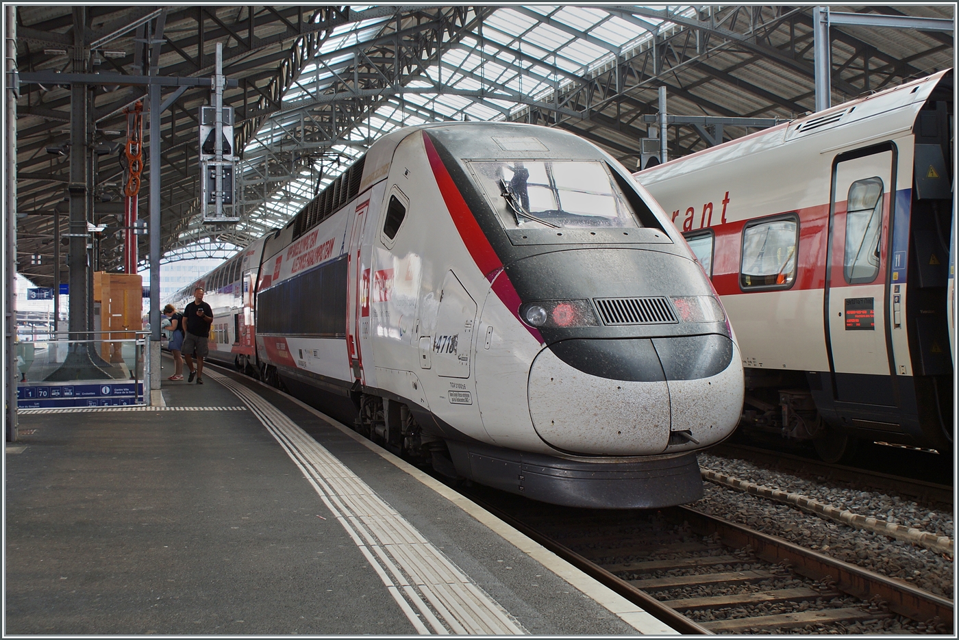Es scheint fast so, als wolle der TGV dem ausfahrenden Flirt nach eilen; doch der aus Paris in Lausanne eingetroffene TGV 4719 wird bis zur Rückfahrt auf ein Abstellgleis rangiert.