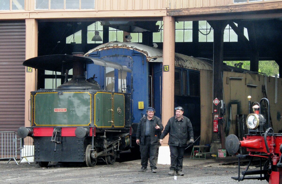 ABC-2 setzt sich am 23 September 2023 vor ein Dampfpendelzug in Mariembourg während das 50.Jahresjubiläum (deswegen der weisse Aufkleber auf die kabine) der CFV3V.