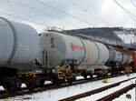 Vierachsiger 62 m³ Drehgestell-Kesselwagen 33 87 7929 803-7 F-ERSA, der Gattung Zacns, der französischen Vermietungsfirma ERMEWA S.A. im Zugverband am 24.03.2021 bei der Zugdurchfahrt in Niederschelden (Sieg).