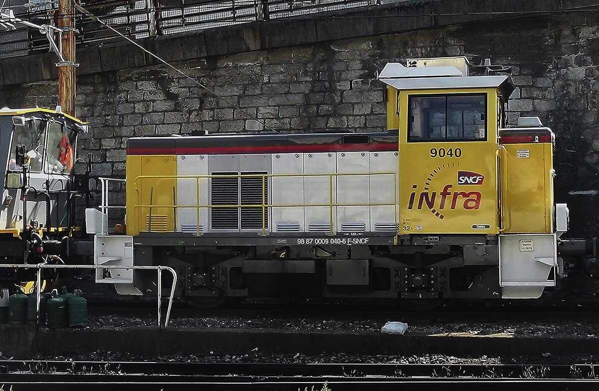 Y 9001 (ein umgebauter Y 8000) steht mit ein Gleisbauzug am 3 Juni 2014 in Chambery.