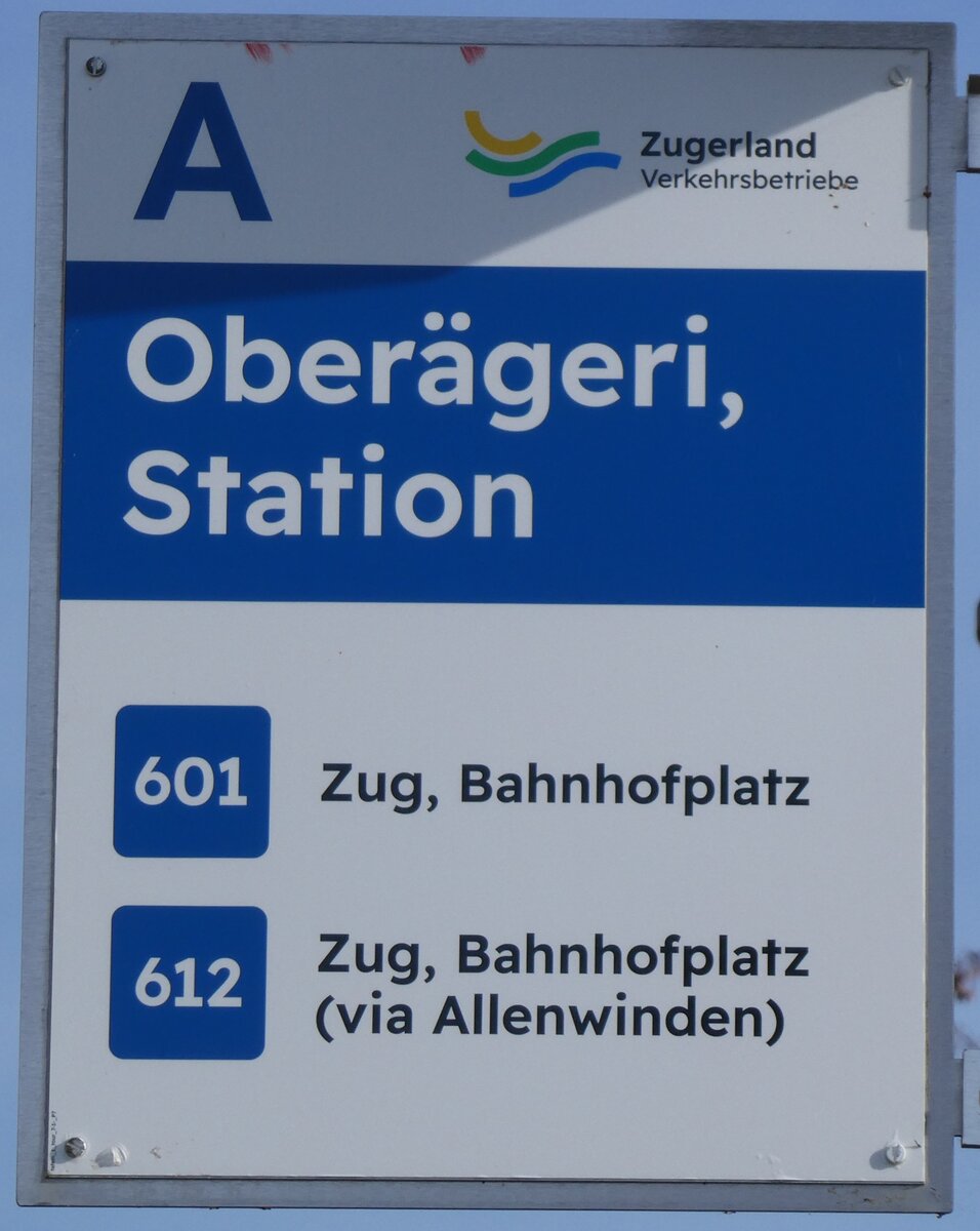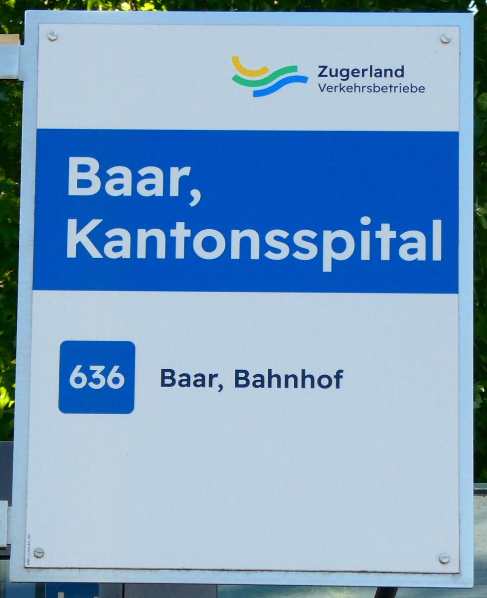 (253'364) - Zugerland Verkehrsbetriebe-Haltestellenschild - Baar, Bahnhof - am 3. August 2023