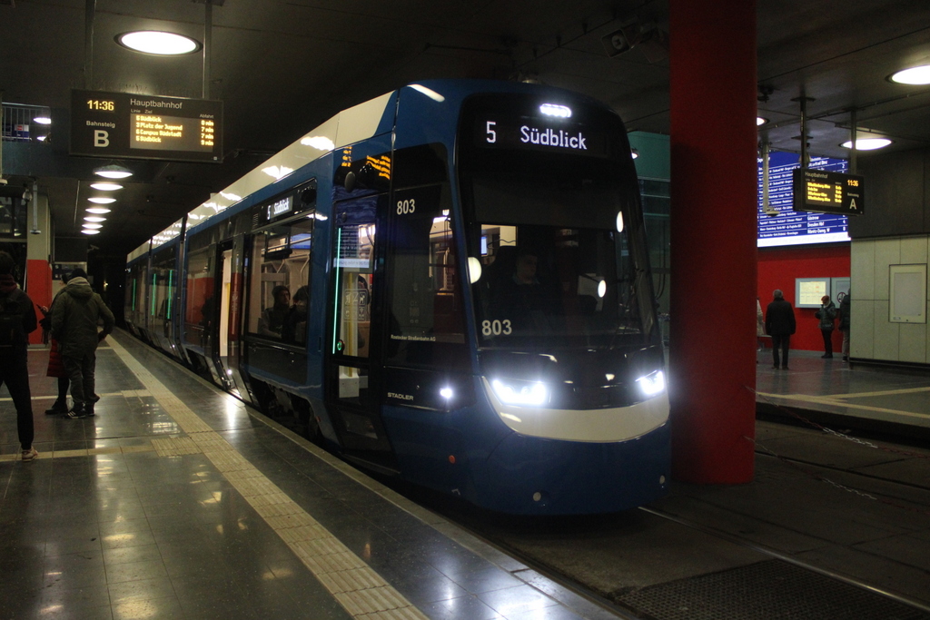 RSAG Wagen 803 als Linie 5 von Rostock Südblick nach Rostock Mecklenburger Allee am 30.12.2025 in der Rostocker Innenstadt