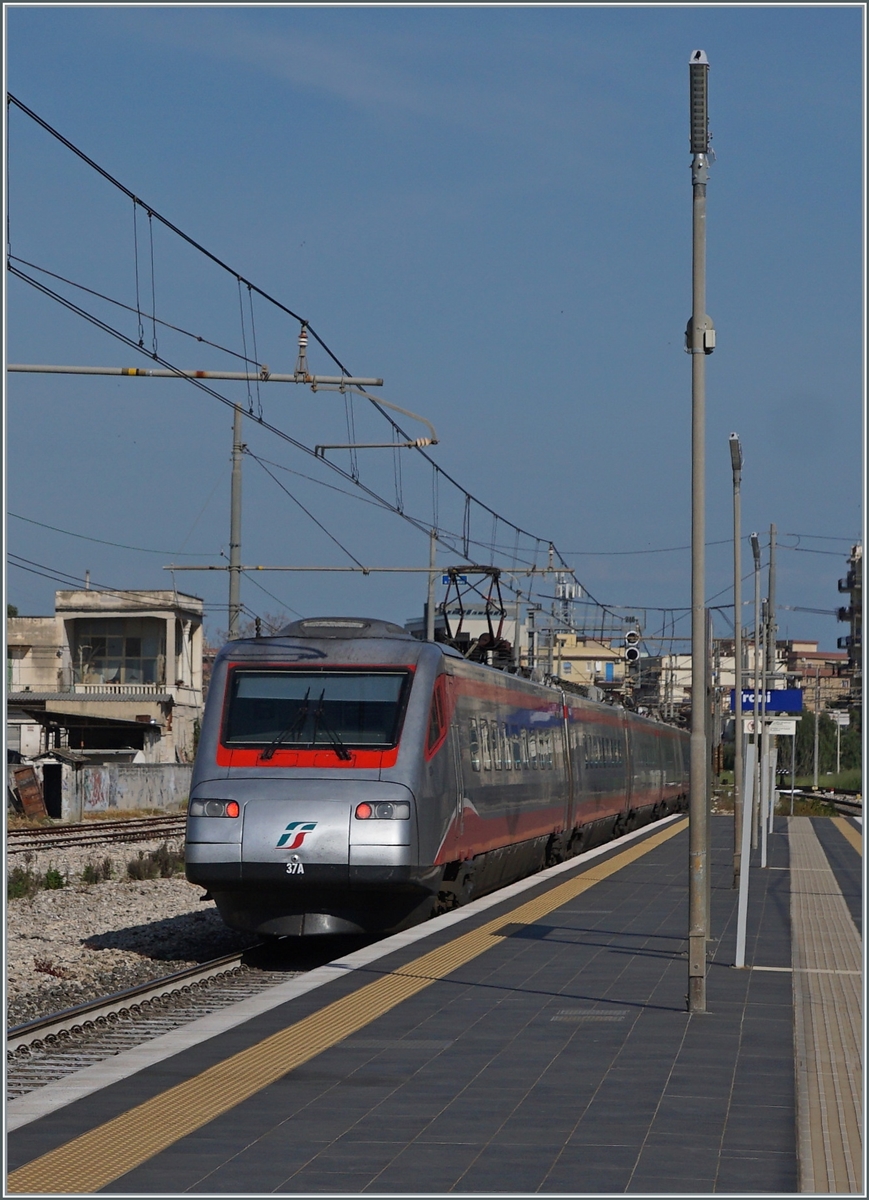 Der FS Trenitalia ETR 104 125 "POP" ist von Barletta nach Fasano als Regionalzug 23519 unterwegs in Poligano a Mare angekommen.