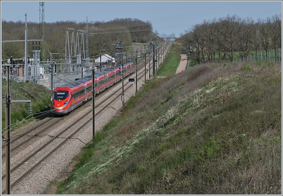 Die Idee kam erst nach der Planung: Neben Foto eines ETR 400 auf der TGV Strecke Paris - Lyon wollte ich auch ein solches von der Hochgeschwindigkeitsstrecke Madrid - Barcelona bekommen. Der "Umweg" hielt sich in Grenzen und war Wettermässig ohnehin die bessere Wahl und so fotografierte ich bei Bujaraloz diesen IRYO ETR 400 / ETR 1000, der sehr schnell durch die ausgetrocknete Landschaft fährt. In Spanien sind die ETR 400 / ETR 1000 als Serie 109 eingereiht. Der Zug ist als IRYO 6011 von Madrid-Puerta de Atocha (ab 10:00) nach Barcelona Sants (an 12:45) unterwegs. 18. April 2024