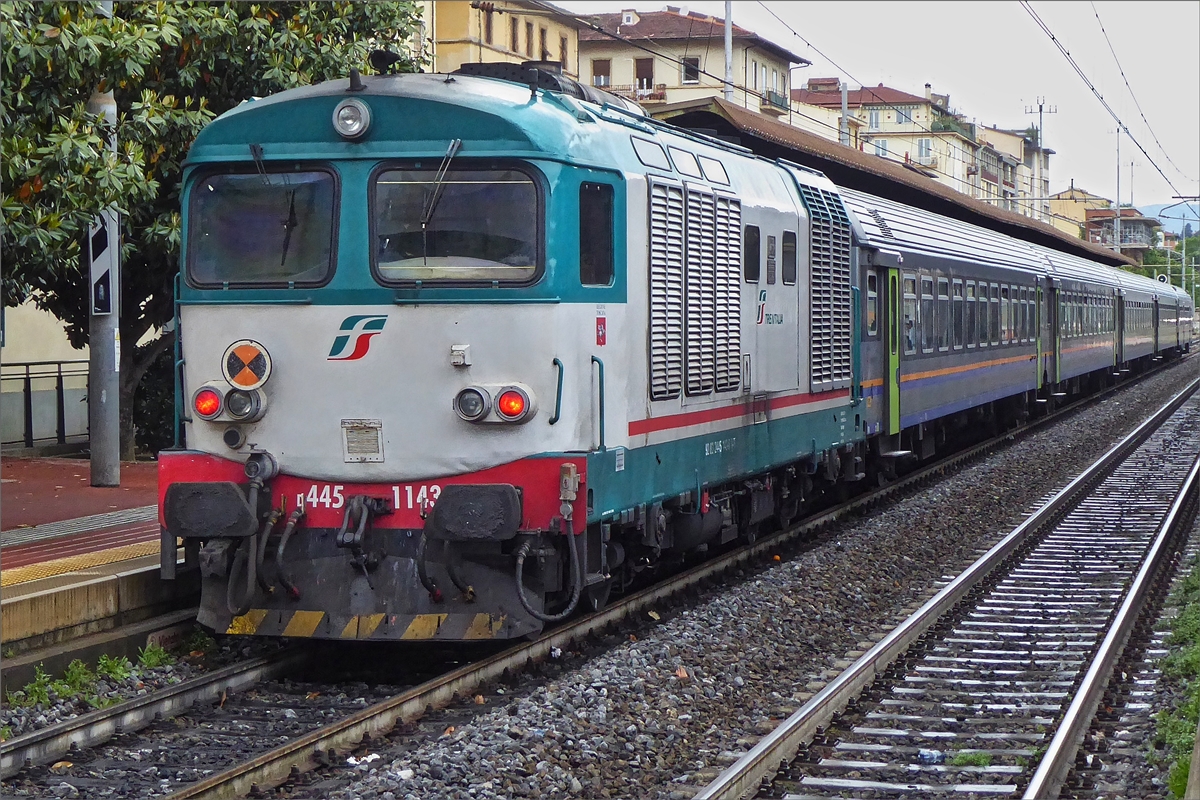 Diesellok D 445 1145 (92 83 2445 143-6 I-TI) schiebt ihren Zug durch den Bahnhof von Firenze Campo di Marte in Richtung Firenze Santa Maria Novella. 18.05.2019 (Hans) Hans und Jeanny De Rond