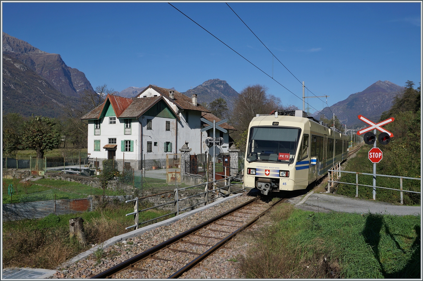 Der SSIF ABe 6/6 34 "Piemonte" verlässt Re als Regionalzug nach Domodossola.