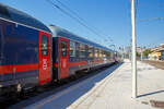Steuerwagen voraus (geschoben von der Trenitalia E.401.011) fährt ein Trenitalia Intercity (IC) am 22.07.2022 durch den Bahnhof Vernazza (Cinque Terre) in Richtung La Spezia bzw. Pisa.