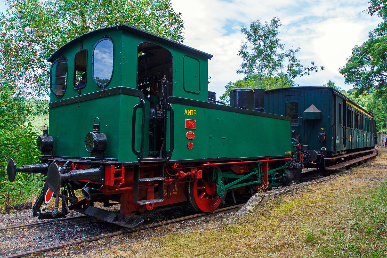 Die zweiachsige Dampflok AMTF № 8 / ADI 8, ex ARBED № 8, ex HADIR № 8, der AMTF (Association des Musée et Tourisme Ferroviaires) a.s.b.l, erreich am 16 Juni 2013 mit ihrem Personenzug von Pétange (deutsch Petingen) den Industrie- und Eisenbahnpark Fond-de-Gras, die Museumsbahn ist auch als „Train 1900“ bekannt. Hinter der Lok sind 3 ex belgischen GCI (Grande Capacité et Intercirculation / Große Kapazität mit Durchgang).