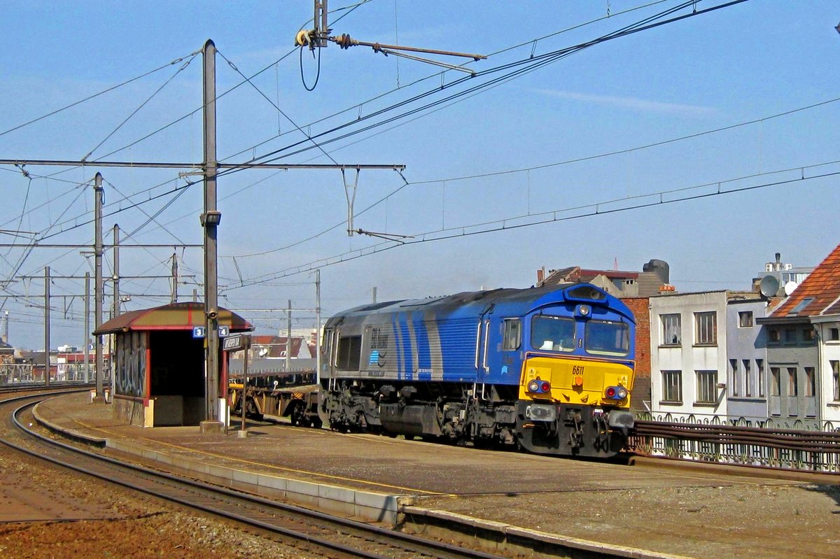 In eine der letzte Einsätse von ERS Railways Class 66 durchfahrt 6611 mit ein Leercontainerzug am 23 Márz 2011 Antwerpen-Dam.