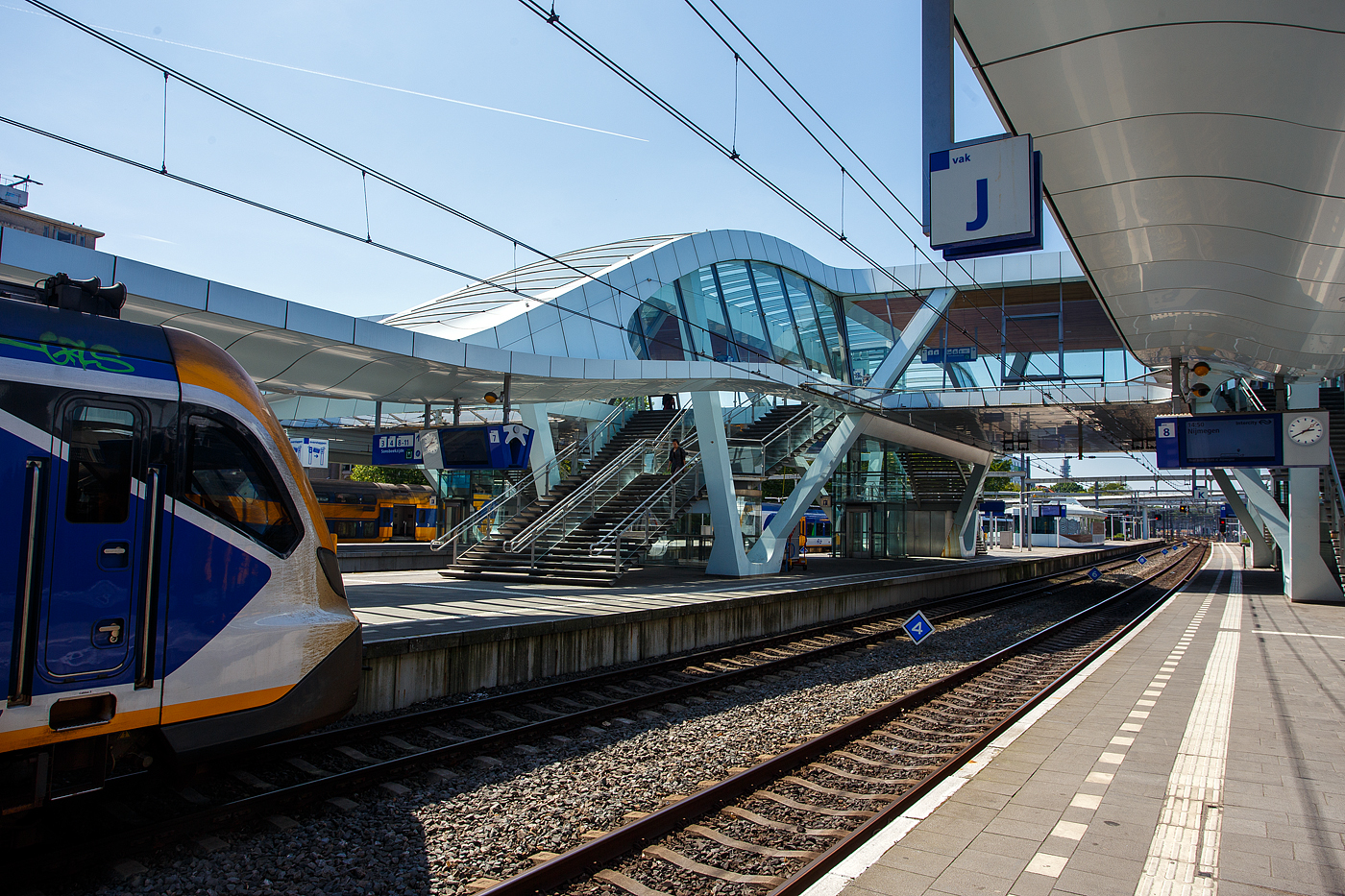 Zwei gekuppelte Sprinter (hinten der dreiteilige SGMm 2953 und vorne der zweiteilige SGMm 2120) der NS (Nederlandse Spoorwegen) werden am 31 März 2018 im Bahnhof Amsterdam Centraal, als Sprinter nach Zandvoort aan Zee, bereitgestellt.
